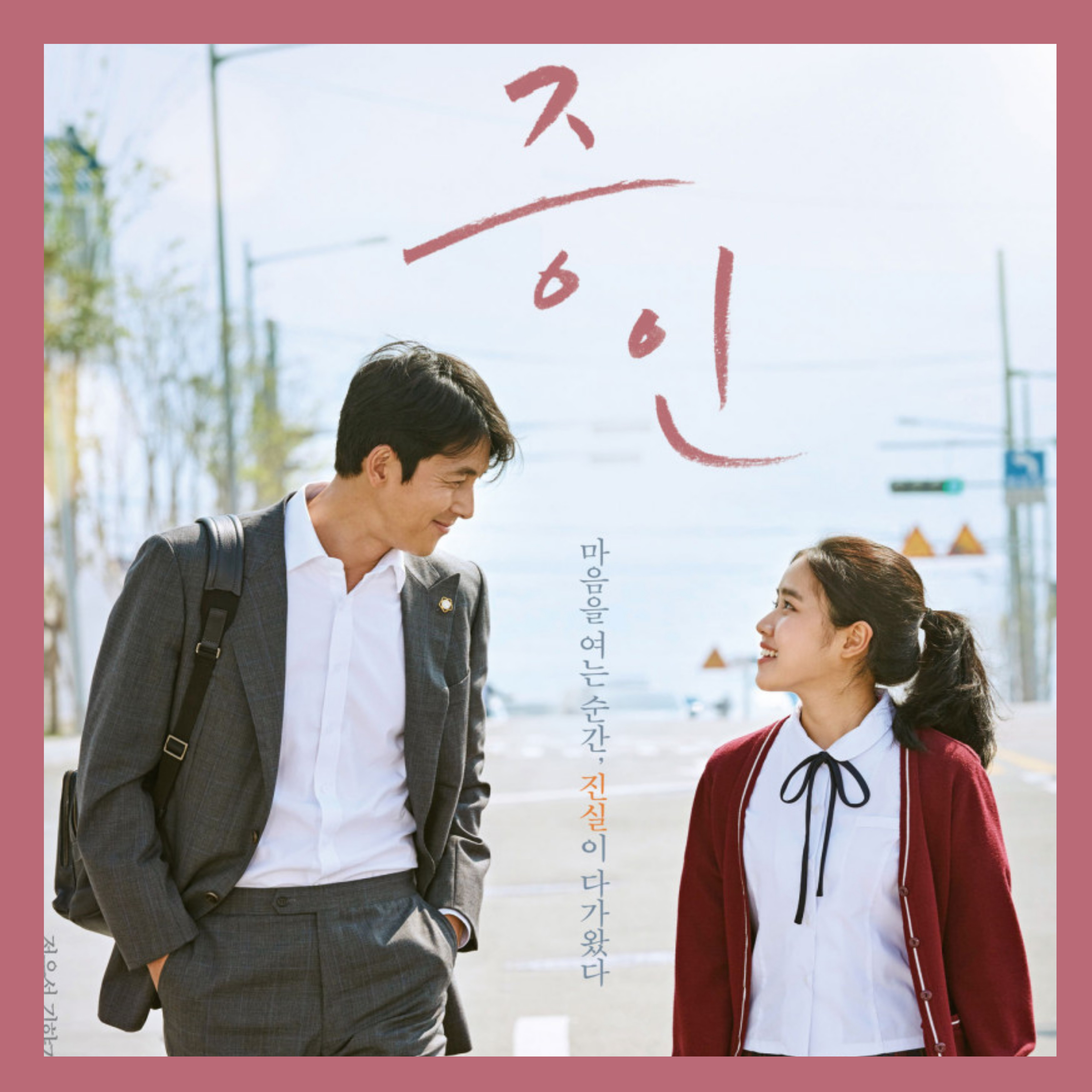 완벽했던 둘의 연기, 둘의 케미로 웃음과 감동, 깨달음을 선사해 준 영화였습니다. 서로에서 좋은 영향을 주며 더 좋은 사람이 되고 싶게 만들었고 그로 인해 긍정적인 요소로 자극했습니다. 처음 불순한 의도로 지우에게 다가갔지만 지우로 인해 점차 선입견에서 벗어나 진실을 밝혀내는 그의 용기 있는 행동에 박수를 쳐주고 싶었습니다. 진실을 외면한 채 자신의 잘못을 뉘우치지 못하는 현실에서의 어른들은 많이 있습니다. 자신의 야망을 위해 자신이 행한 일들이 올바르지 않음을 알고 있음에도 인정하지 않는 사람들이 <증인> 영화의 정우성 배우가 맡은 순호 변호사처럼 느끼고 깨우쳐 올바른 행동을 하는 어른이 되었으면 하는 바람입니다. 서로가 서로의 잘못을 인정할 수 있는 어른이 되어 자라나는 아이들에게도 알려주길 바라며, 주변에 있을 장애인에 대한 선입견에서 조금이나마 벗어나 그들과 가까워질 수 있고 그들을 이해할 수 있는 계기가 되었으면 좋겠습니다. 스스로에게 좋은 사람인지에 대해서 생각해 보게 된 영화로 마음 따뜻한 감정을 여러분도 함께 느껴보시길 바라며 추천해 드립니다.